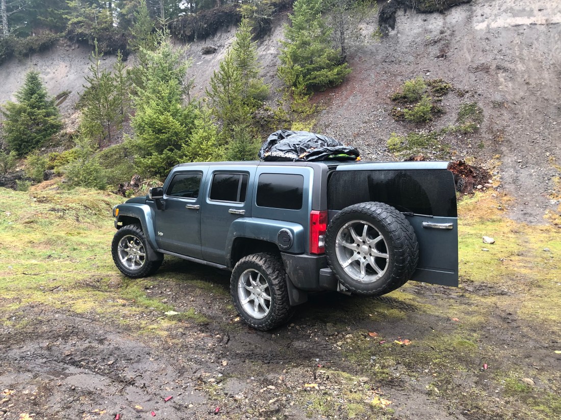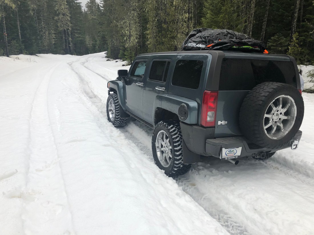 After a good time shooting, we packed the truck back up and headed up the mountain to see what kind of trouble we could find. After passing through a typically locked gate, we passed a minivan that had headed up for the same reason. Luckily we could make it a lot further up the toad than they could. After passing some snow on the road we found a couple guys that were heading off to do some hiking/snowshoeing, maybe we’ll try that some day. We decided to take the road towards Ape Cave on the south side of the mountain, unfortunately after a few miles the H3 just didn’t feel like going too much further. We decided to turn around and head back but that turned out to be way more difficult than expected. We had to do a little forward/reverse dance and even break out the shovel, but we got out fairly quick. Definitely a learning experience on the 4WD capabilities of the H3 and when to use the different options. After we got turned around we took some time to let the kids play in the snow.